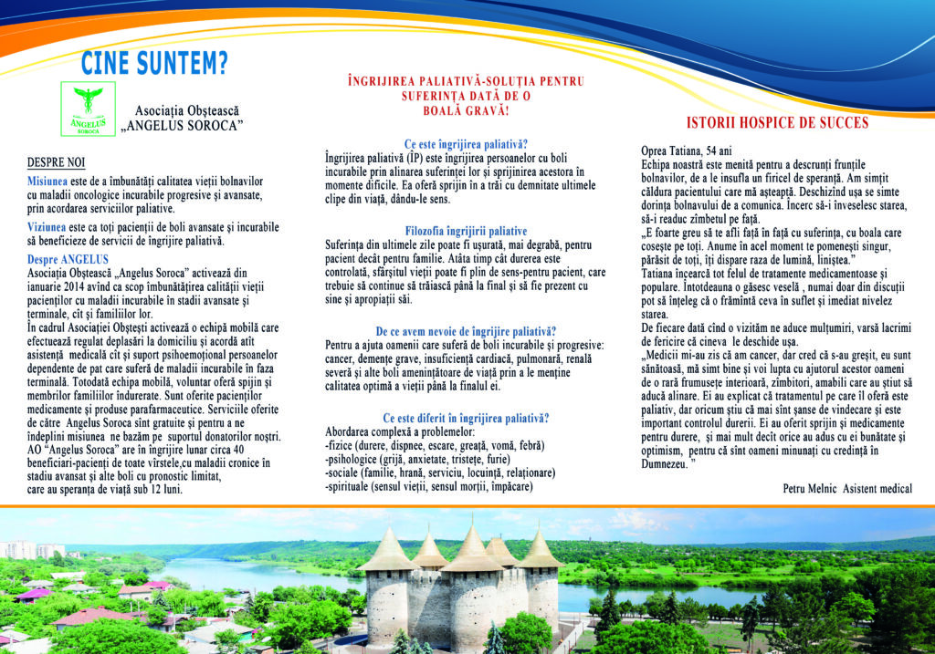 Angelus Soroca, acordă îngrijire paliativă pacienților din raionul Soroca ce suferă de maladii incurabile și cu termen de viață limitat.